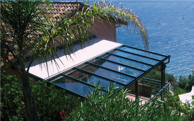 Mit dem Glasdachsystem sind Sie optimal für jedes Wetter gerüstet. Die robuste, pulverbeschichtete Aluminiumkonstruktion bietet dank des integrierten Verbund-Sicherheitsglases ganzjährigen Schutz gegen Regen und Schnee.